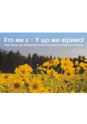 Ми – християни з міста Луцька. Ми віримо в Господа Ісуса Христа, Сина Божого, Його смерть і воскресіння як єдину надію спасіння.